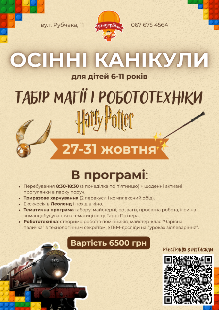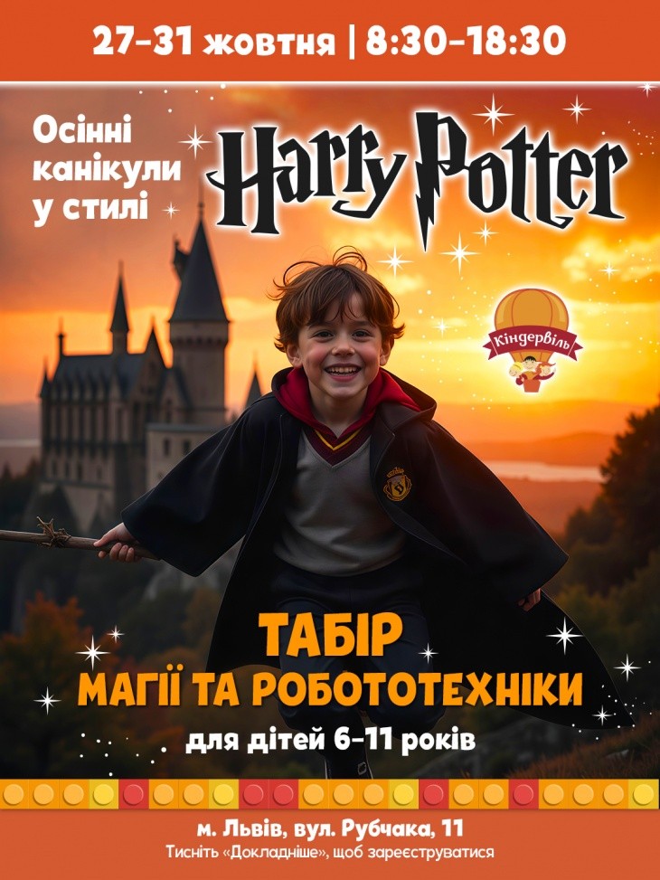 Цієї осені ми запрошуємо дітей 6–11 років у світ, де магія Гаррі Поттера поєднується з сучасними технологіями!