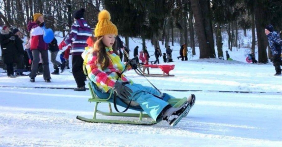 У багатьох парках Львову можна покататися на санках абсолютно безкоштовно. Місцеві жителі розчистили підходящі для катання схили та зробили імпровізовані траси для катання.