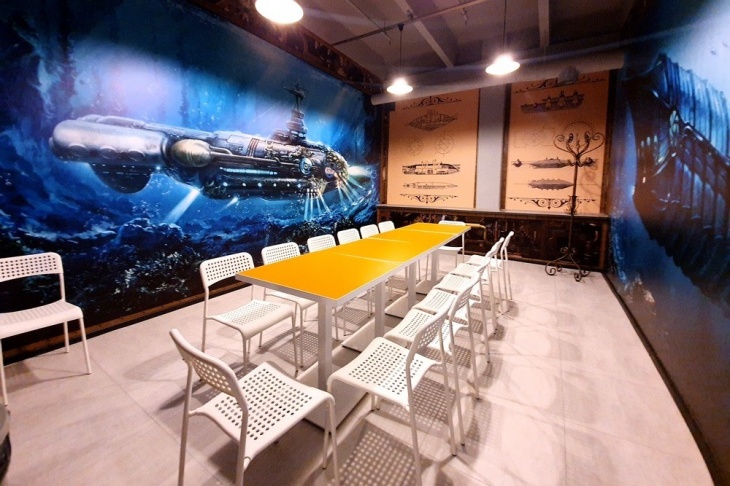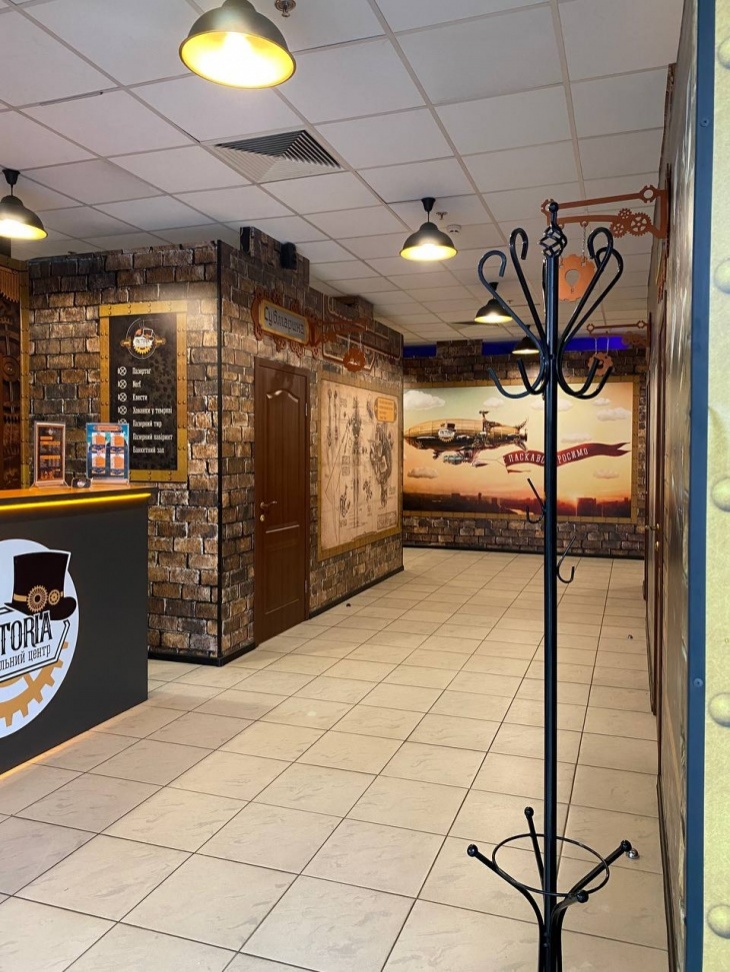 Весь простір «Факторії» виконаний у стилі стимпанк, що надає центру особливого шарму та унікальності. Мідні труби, шестерні, парові машини та безліч інших деталей створюють атмосферу майбутнього, що зливається з минулим. Кожна деталь усередині «Факторії» продумана до дрібниць, щоб занурити Вас у захопливий світ пригод.