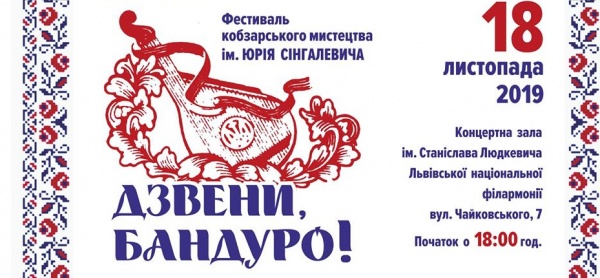 18 листопада 2019 року в приміщенні концертної зали ім. Ст. Людкевича Львівської національної філармонії відбудеться обласний фестиваль кобзарського мистецтва ім. Ю. Сінгалевича «Дзвени, бандуро!».